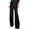 Женские брюки средней посадки однотонные с блестящими пайетками повседневные брюки широкие штанины сценические танцевальные брюки одежда для вечеринки в ночном клубе