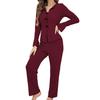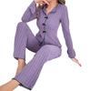 Удобная трикотажная ткань: Этот пижамный комплект, изготовленный из мягкой, приятной к коже полиэстерово-спандексовой смеси, выполнен из вязаного полотна в вертикальную полоску, которое обеспечивает отличную воздухопроницаемость и тепло.. Идеально для ношения дома весь день, обеспечивает максимальный комфорт во время отдыха или сна, что делает его идеальным для круглогодичного использования.