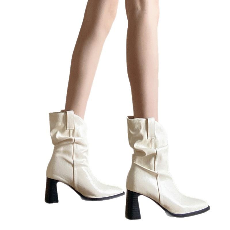 Новые короткие ботинки, женская обувь, минималистичная обувь с квадратным носком, обувь на высокой подошве