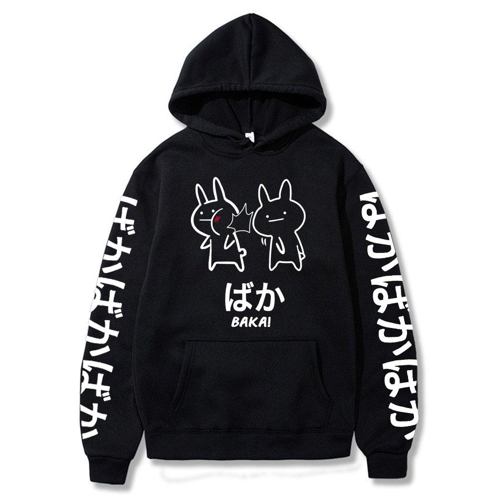 2021 Summer Japanese Anime Baka Rabbit Slap Hoodies Japan Anime Funny Cute Hoody Harajuku Black Japanese Sweatshirt Pullover