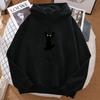 Унисекс Худи с принтом «Шаловливый Черный Кот» Хип-Хоп Флисовая Толстовка Мягкая Теплая Стиль Харадзюку Мультяшный Персонаж Удобный мото
