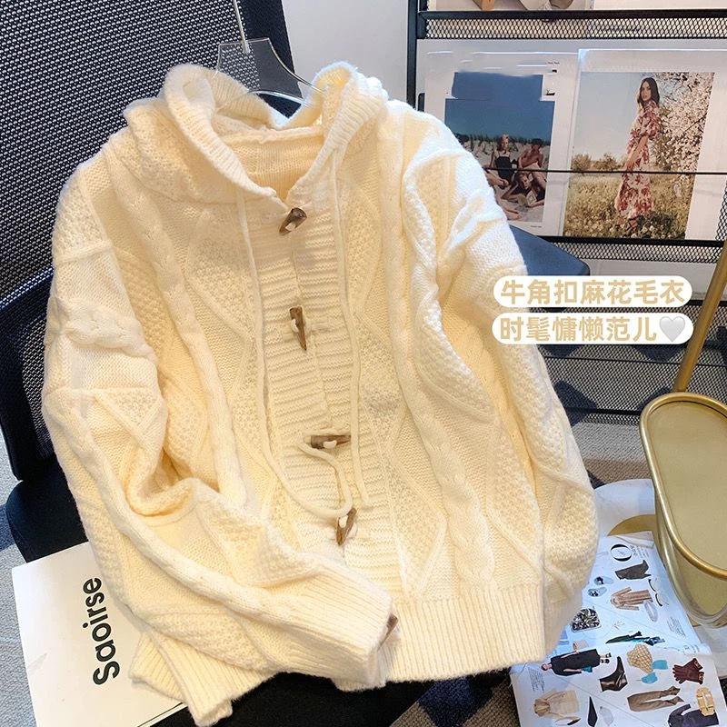 Ленивая пуговица-рог Вязаная куртка Женская Осень Зима Новая Теплая Мягкая Восковая Свободная Ретро Нишевая Кофта Кардиган