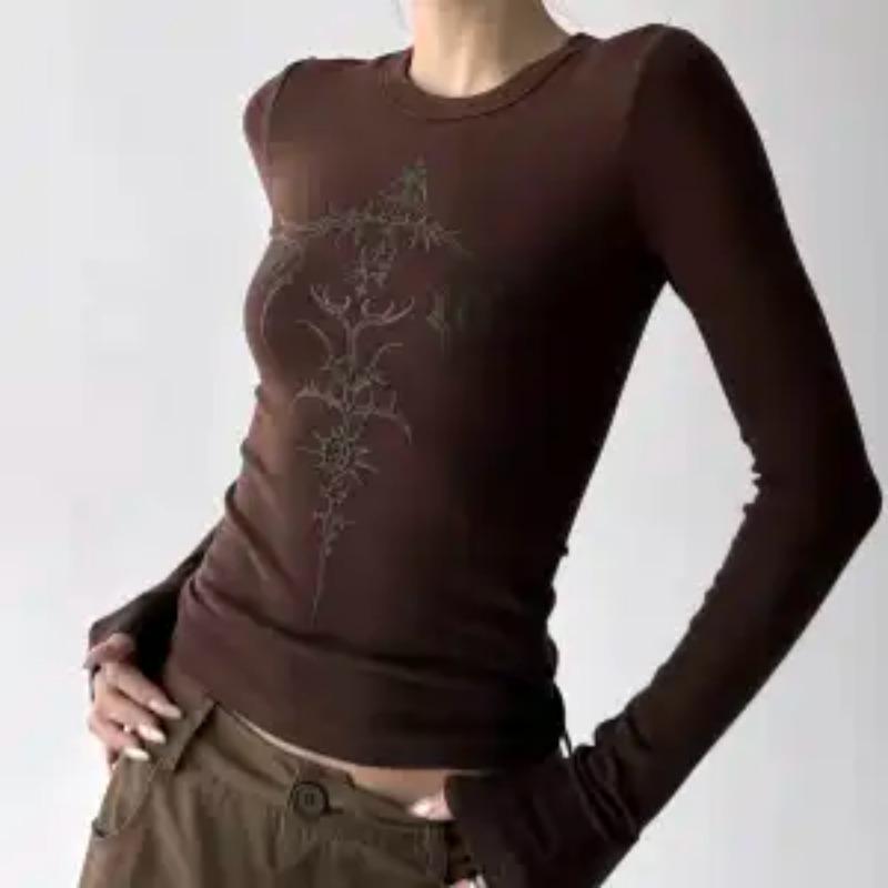 Американская ретро футболка с длинным рукавом с принтом для женщин бархатная осенне-зимняя приталенная базовая футболка модный топ