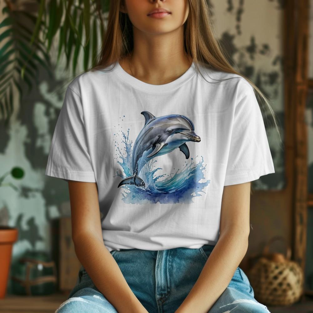 Футболка с дельфином «Всплеск», для любителей океана, морское животное, летний стиль
