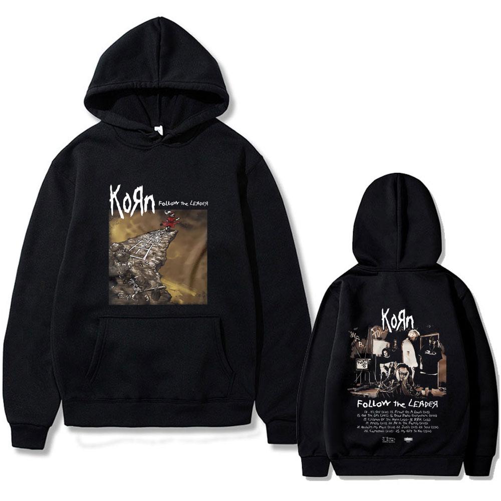 Худи с графическим принтом Rock Band Korn Follow The Leader Мужское Оверсайз Свитшот Редкое Ну-метал Музыкальные Худи Мужчины Женщины Готический Свитшот