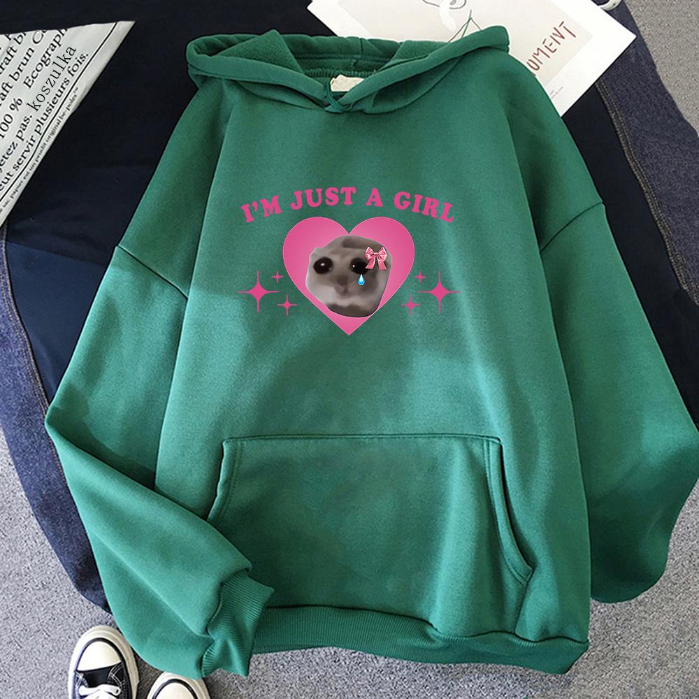 Смешной хомяк Мем Я просто девушка Худи 2024 Кавайные Женские/мужские Худи Харадзюку Унисекс Флисовый Пуловер Толстовка Зимняя Одежда