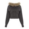 VAYLA Куртка укороченная приталенная с капюшоном и отделкой из искусственного меха Y2K с длинными рукавами и застежкой-молнией, уличный стиль, повседневная, осенне-зимняя одежда