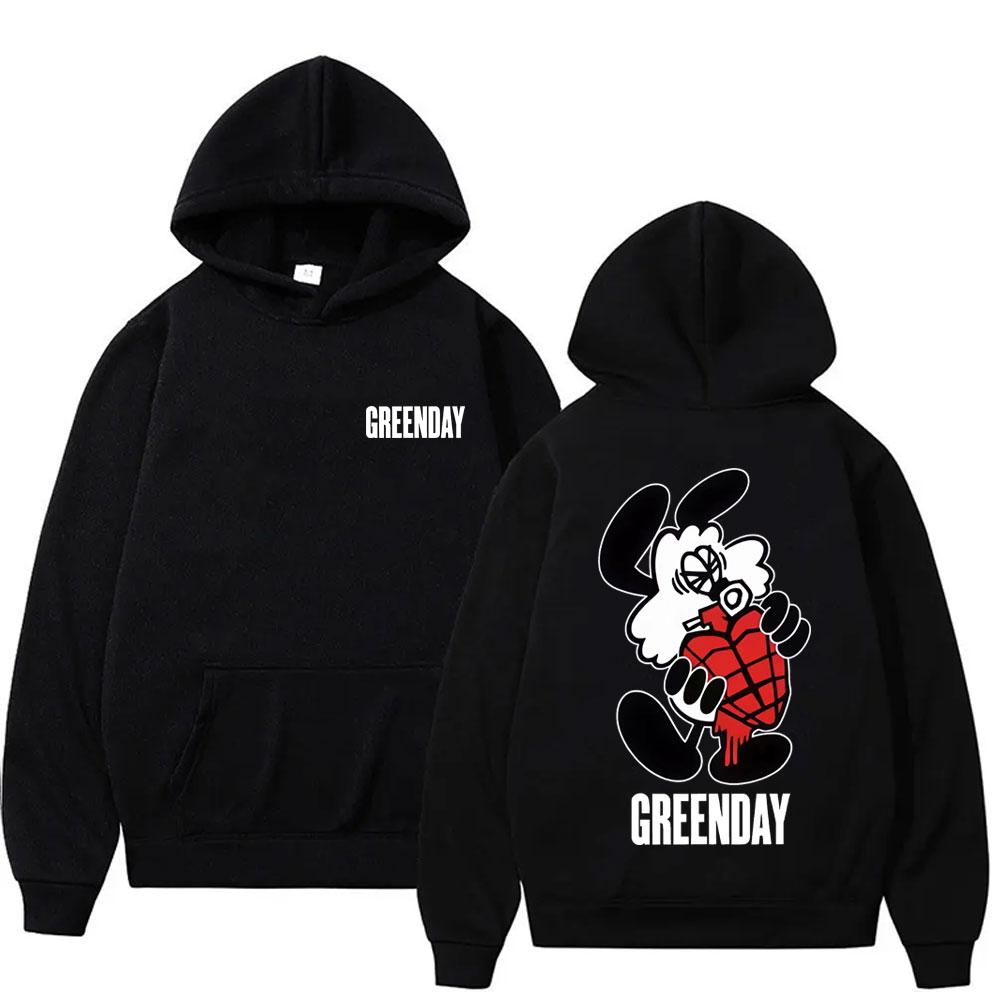 Худи в мультяшном стиле Green Day, мужское, винтажное, оверсайз, стритвир, унисекс, модное, готическое, рок, свитшот с капюшоном