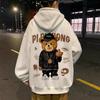 Осенняя Зимняя Мода Женский Утепленный Свободный Флисовый Спортивный Костюм с Принтом Медведя Уличная Мода Худи Повседневная Толстовка