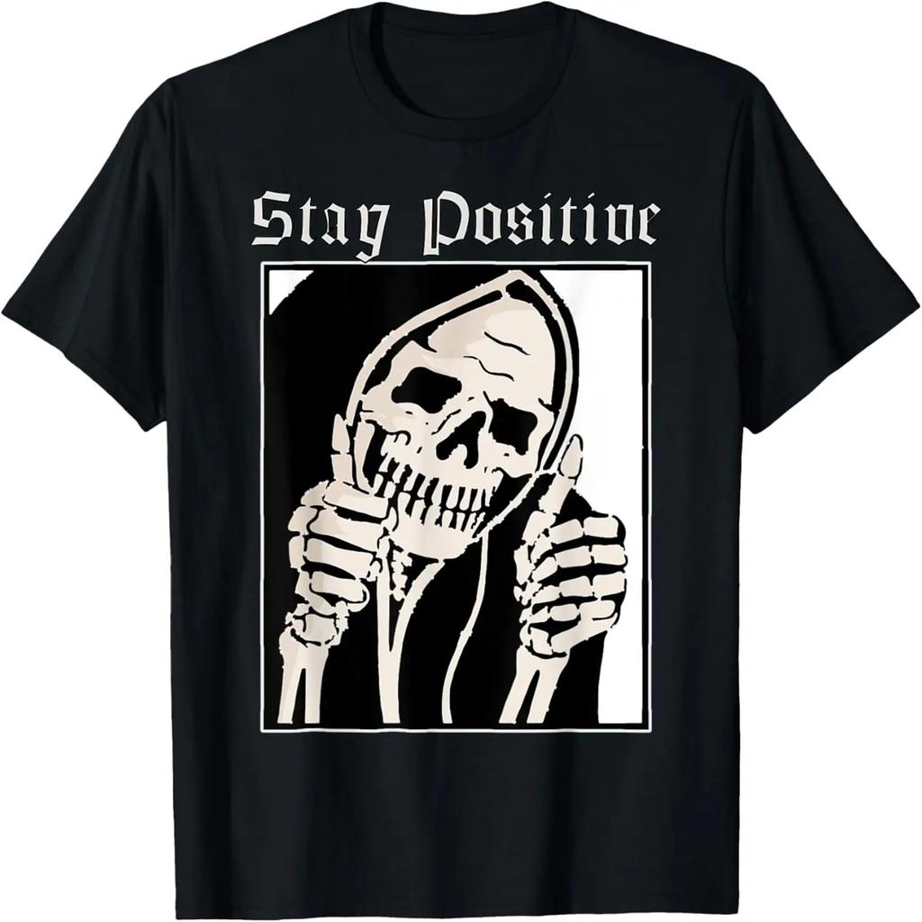 Оставайся позитивным мрачный жнец мертвый внутри большой палец вверх жнец готическая футболка