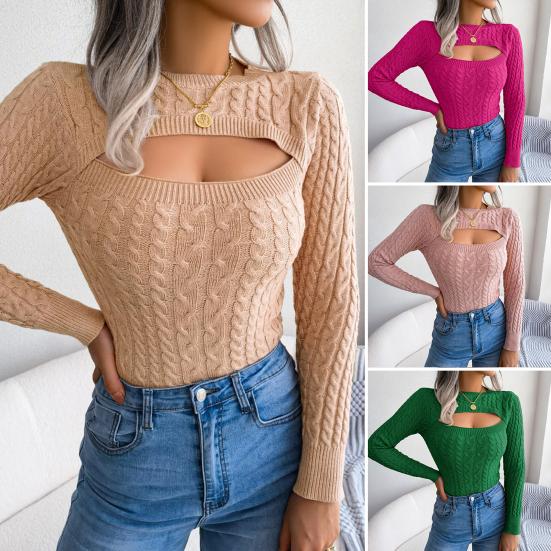 Привлекательный дизайн с вырезом на груди: Обогатите свой осенне-зимний гардероб пленительным ажурным узором, украшающим грудь этого свитера.. Добавляя нотку очарования, эта деталь усиливает общее модное заявление, позволяя вам выделяться без особых усилий.