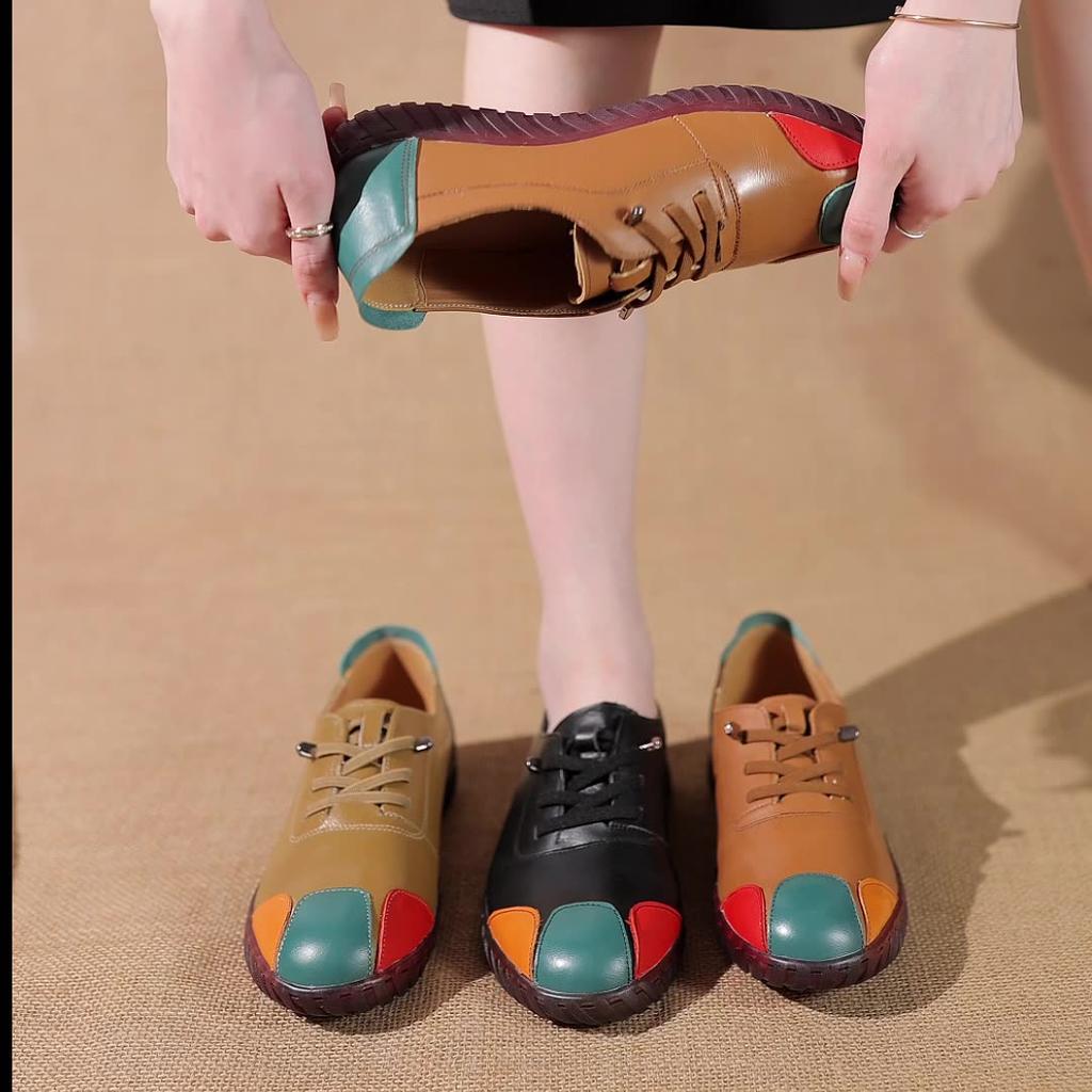 Дизайнерские кожаные лоферы на шнуровке для женщин Ретро Пэчворк Винтажные Оксфорды Осенние Мамины Балетки Женская Обувь
