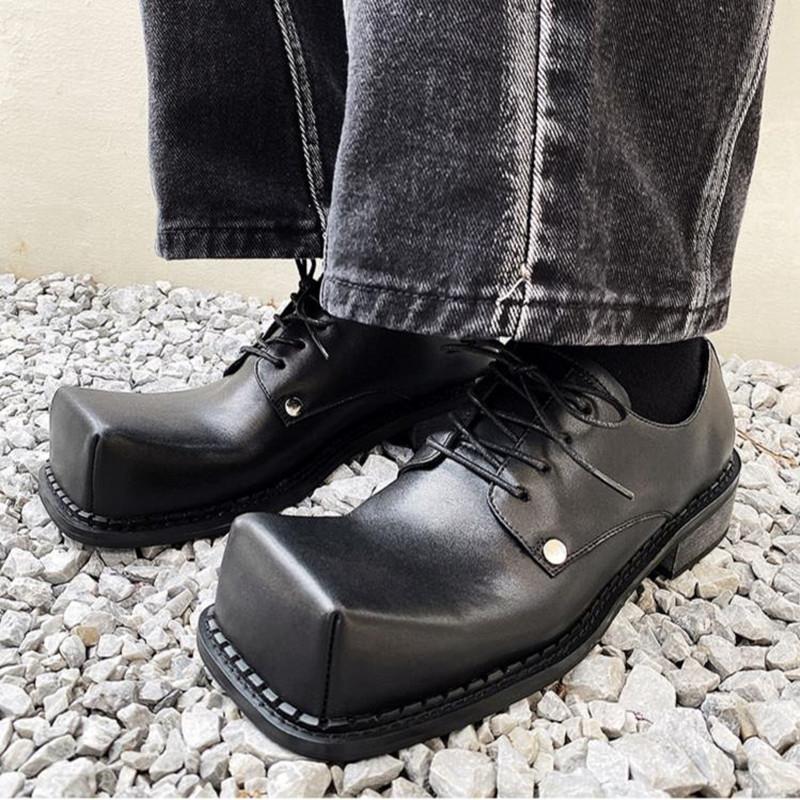 Мужская кожаная обувь Мужчины Новые квадратный носок Массивная платформа Ретро Рабочая обувь Весна Осень Дерби Обувь Низкий верх Мужские Повседневные Лоферы
