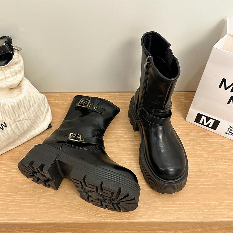 Ankle Women's Boots Flats Fashion Platform Leather Shoes Winter Motorcycle Boots New Trend Buckle Designer Mujer De Botas