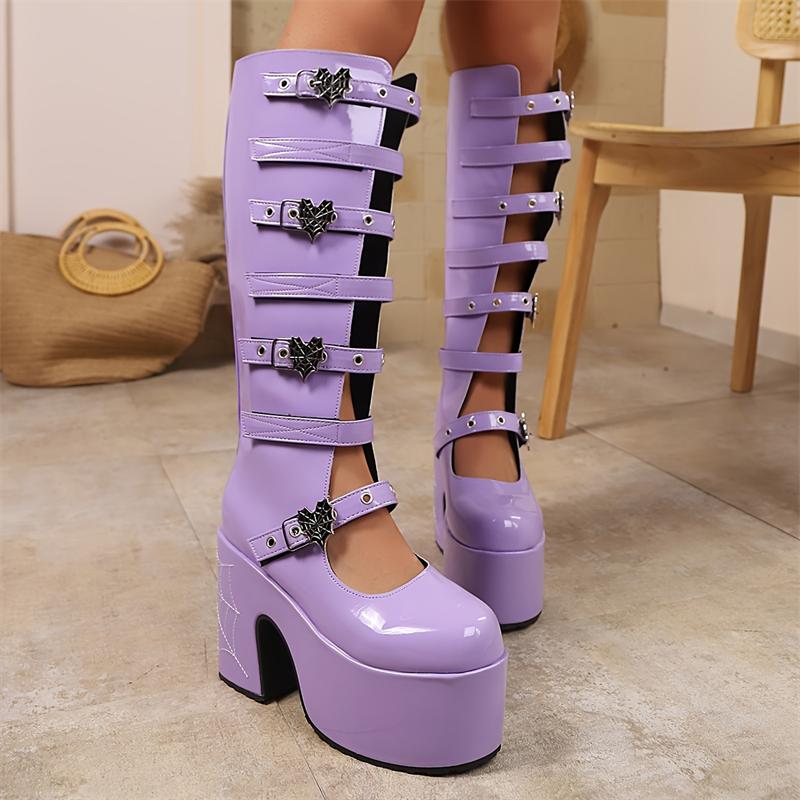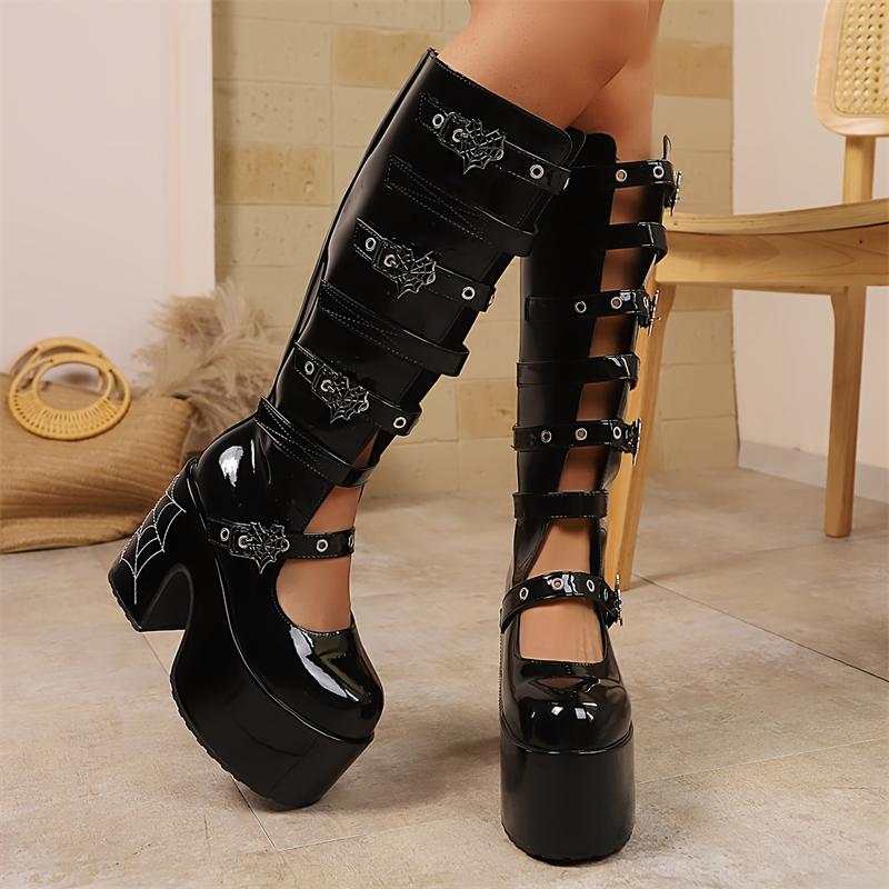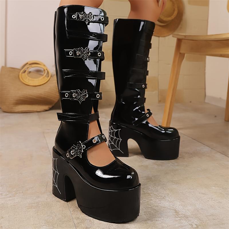 Женские сапоги в стиле панк, высокие сапоги для косплея, удобные длинные кожаные сапоги на черной платформе с высокой танкеткой, женская обувь в готическом стиле