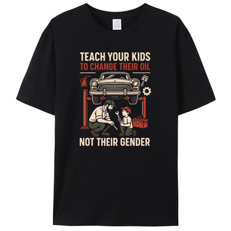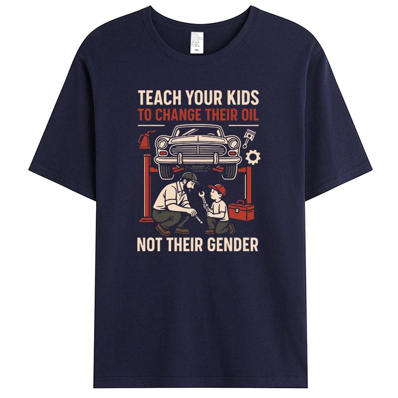 Funny Teach Your Kids to Change Their Oil Not Their Gender Men's 100% Cotton T-Shirt Casual Tee Tshirts Tops