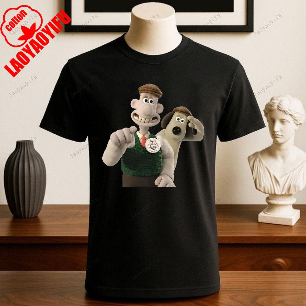Wallace and Gromit Printed T-shirt Tops Cartoon and Anime Printed T-shirt Summer Cotton Casual Breathable Camisetas Tees