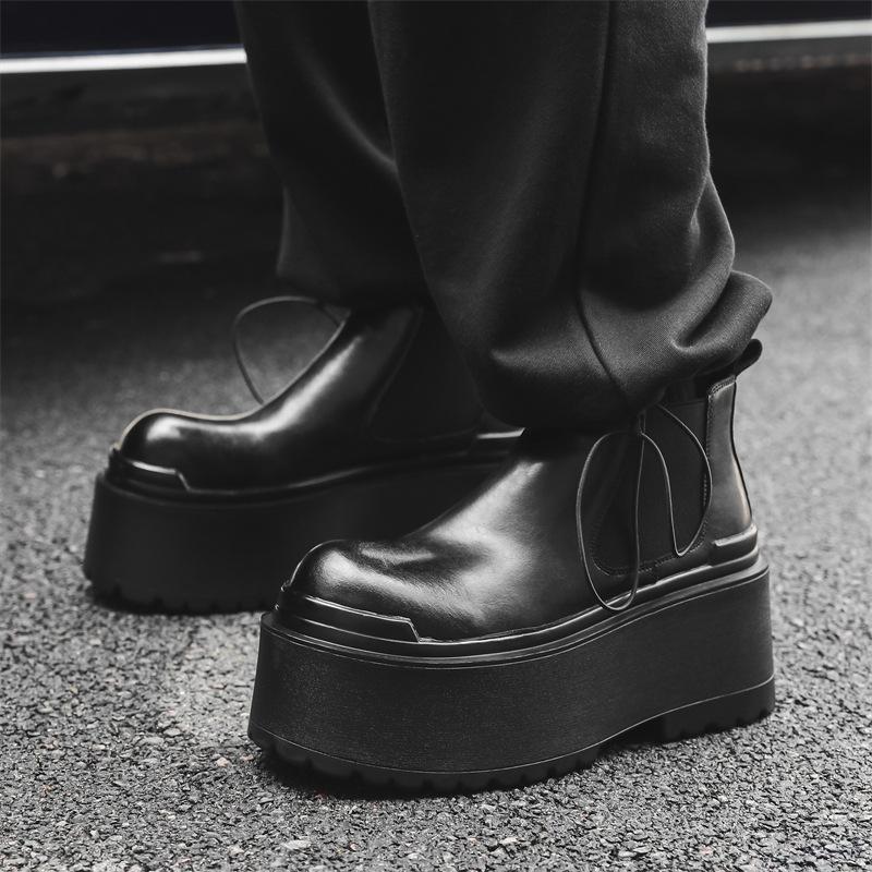 Мужские кожаные увеличивающие рост туфли челси на очень толстой подошве, с рукавом, туфли-маффины, короткие ботинки