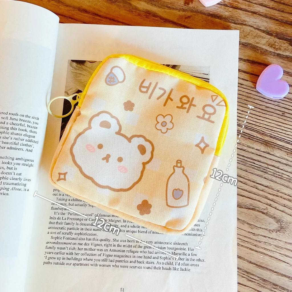 Корейские сумки для хранения гигиенических салфеток с милым медведем большой емкости, сумка-органайзер для тампонов с героями мультфильмов для девочек, мини-сумка