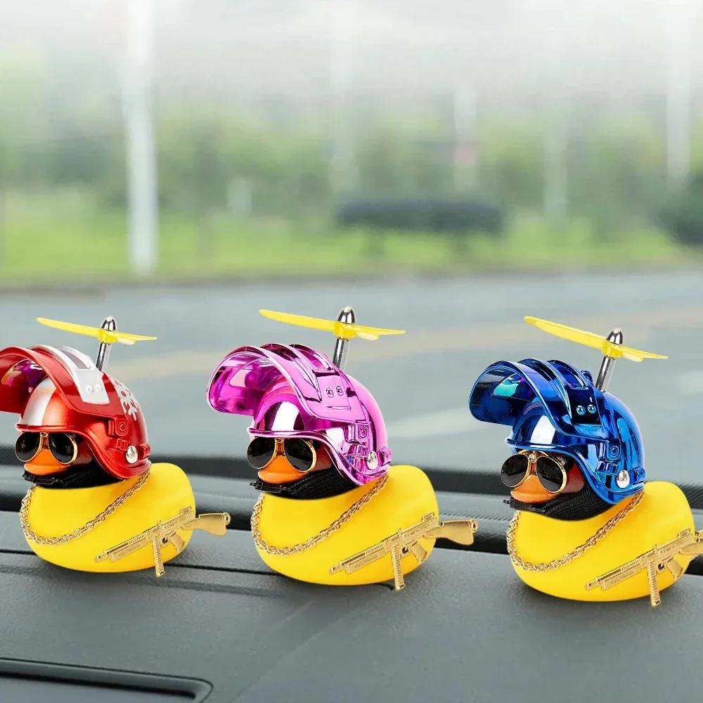 Желтая утка со шлемом для велосипеда без фар Автомобильные аксессуары Утка в машине Украшение салона автомобиля Аксессуары для двигателя