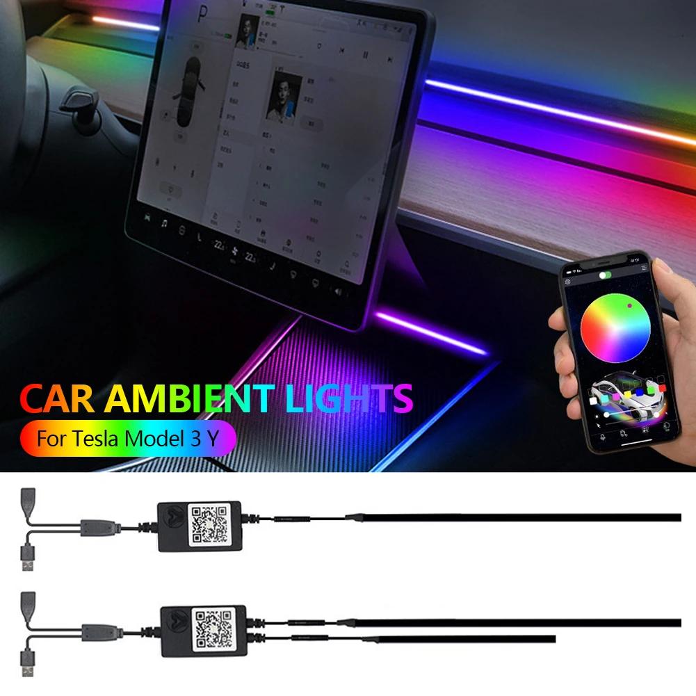 Динамическая неоновая RGB подсветка салона 2 в 1 для Tesla Model 3/Y, модуль автоматического выключения через 60 секунд, декоративная светодиодная лампа для приборной панели