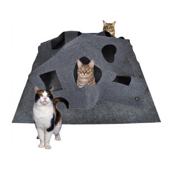 Войлочный кошачий туннель с отверстиями для выглядывания, складной, большой, интерактивный игровой коврик для кошек, пещера-укрытие, коврик для обогащения среды для домашних кошек, коврик для активности, игрушка-ку-ку
