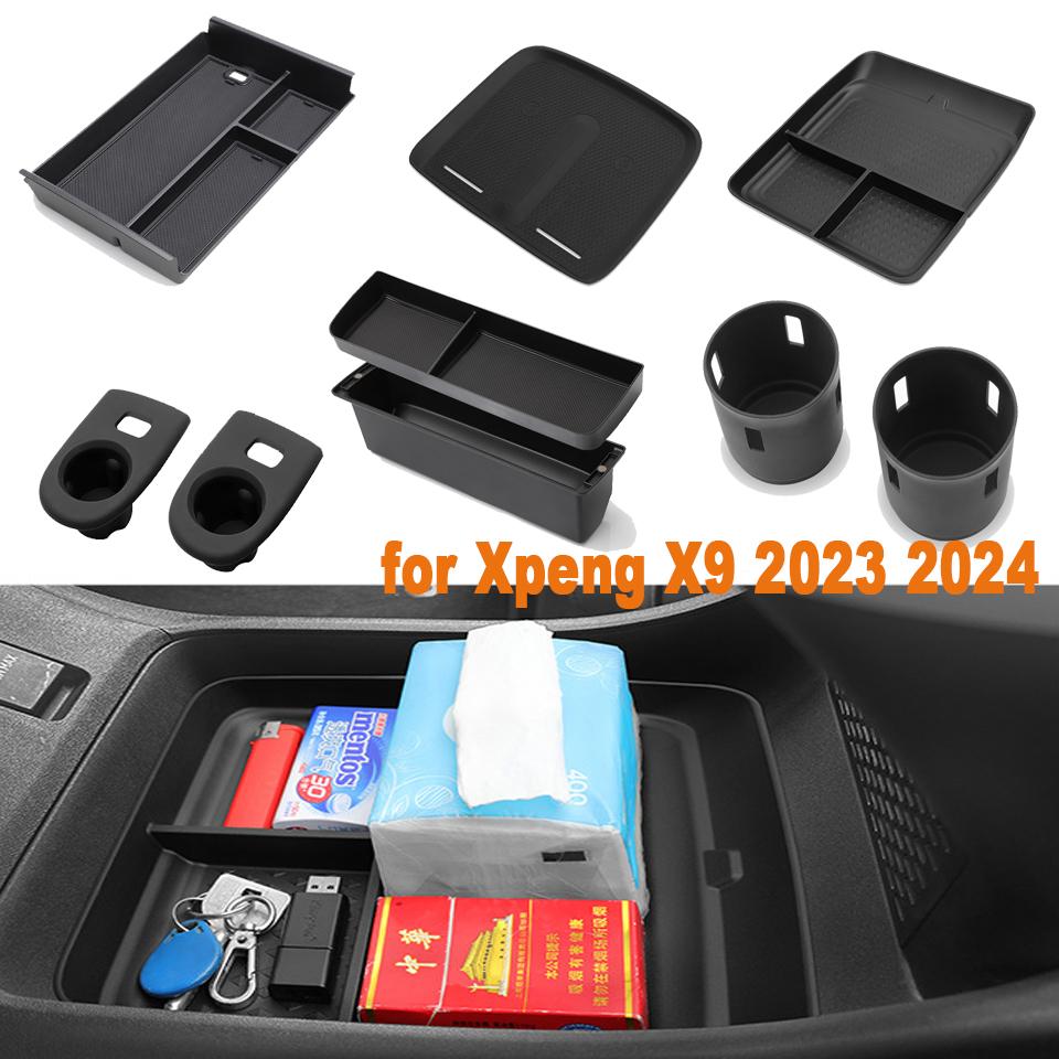 Center Console Storage Box for Xpeng X9 2025-2025 Cup Holder Dashboard Tray Organizer Tidying Black Car Interior Accessories TPE