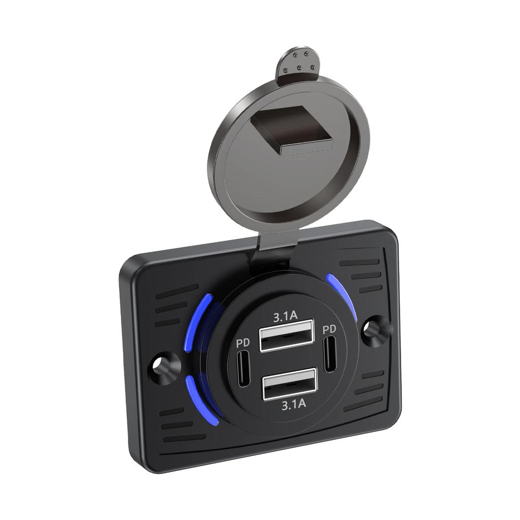 12V/24V RV USB Outlet Dual USB PD30W+QC3.0 Car Charger Socket Panel Waterproof Quick Charger for Car Bus RV Truck Accessories