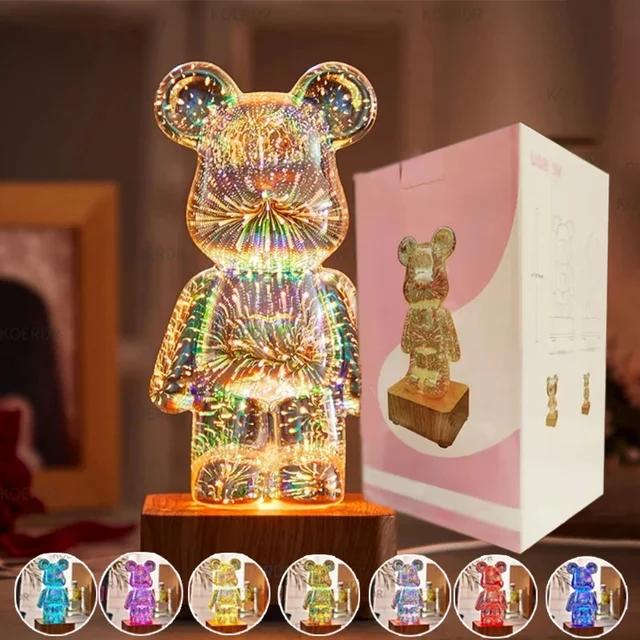 Светодиодный ночник 3D Фейерверк Медведь Проекция Цветной USB Атмосфера Диммирование Гостиная Декоративный Декор Комната Стекло Фейерверк