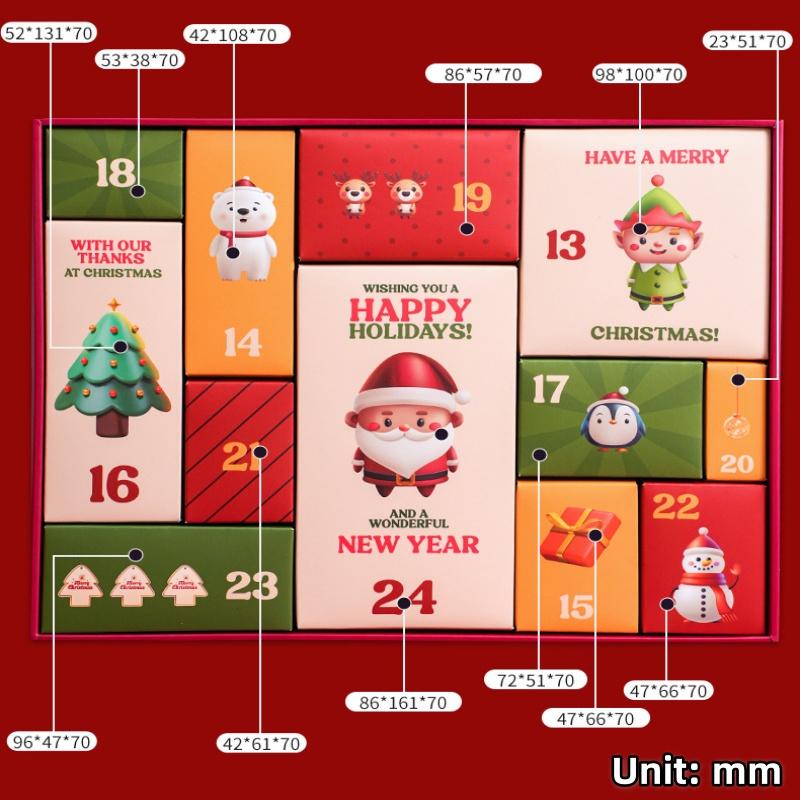 Рождественский Адвент-календарь Обратный отсчет Коробка 12 дней Пустые подарочные коробки Сделай сам Рождественские пустые многоразовые коробки для календаря для рождественского подарка