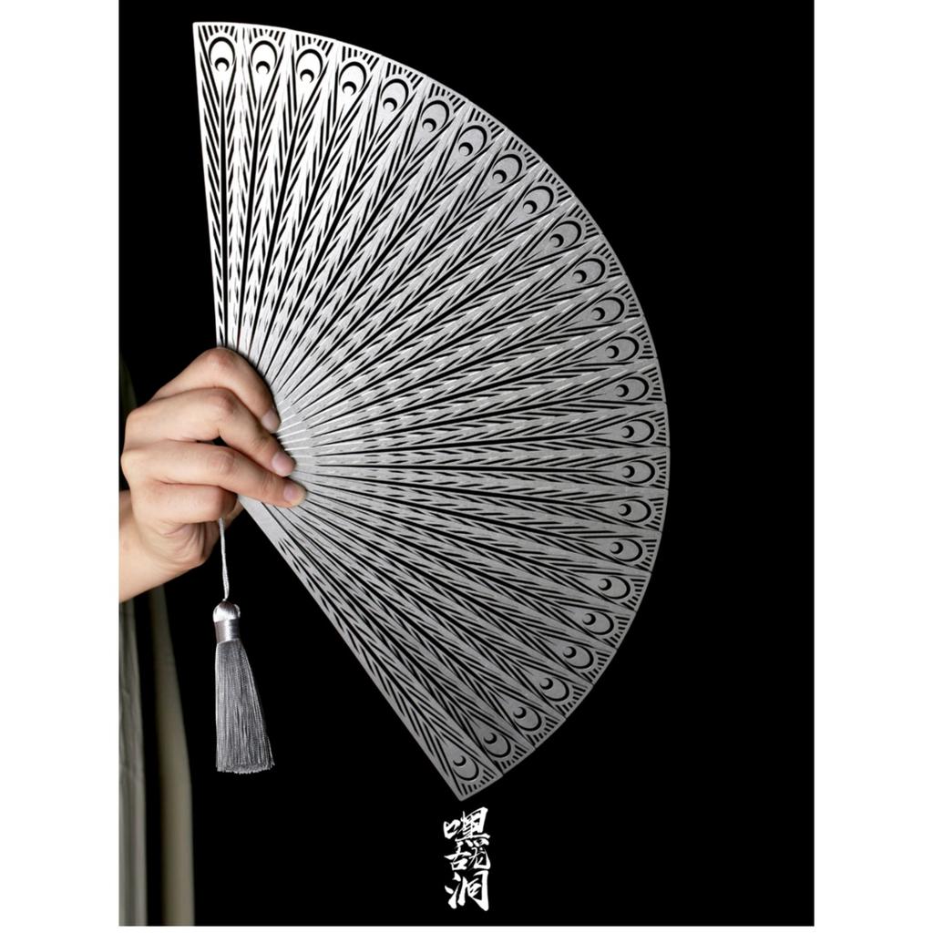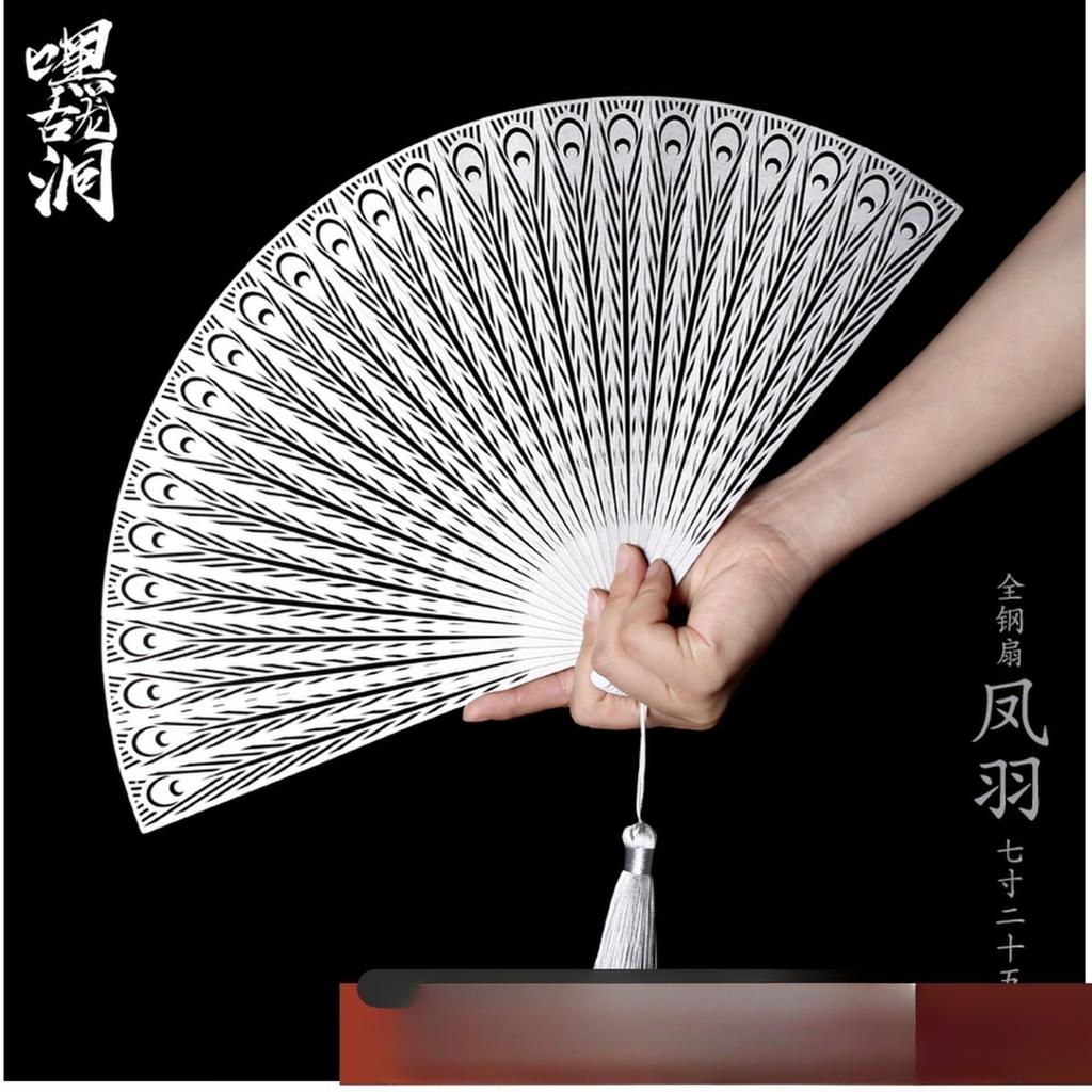 Привет, пещера Гулун, металлический складной веер из перьев феникса, полностью стальной семидюймовый девятидюймовый антикварный для самообороны, для игры в тай-чи кунг-фу, мужской подарок
