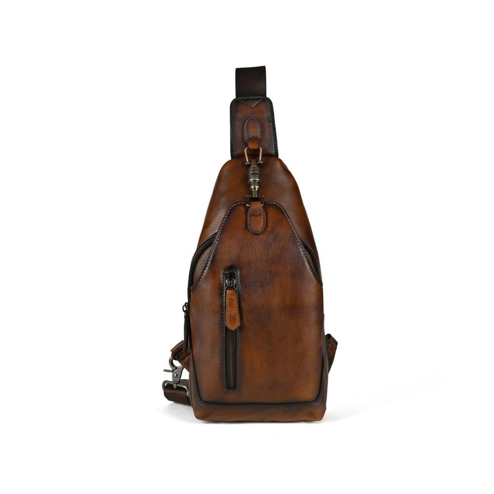Whatna Винтажная сумка через плечо из натуральной кожи рыжего цвета, мужская сумка-слинг, нагрудная сумка, сумка кросс-боди, натуральная толстая кожа, подарок для мужчин,