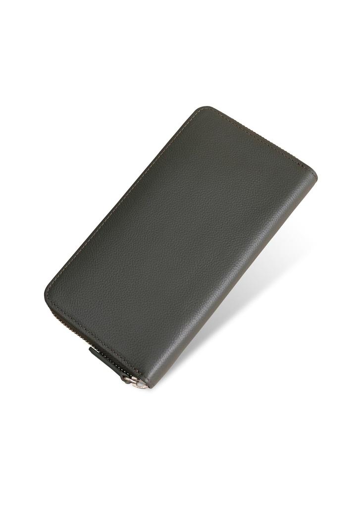 [Business Leather Factory] Длинный кошелек с круговой молнией, Водоотталкивающая натуральная коровья кожа, Унисекс, Большая вместимость, 21 карман, Вертикальный