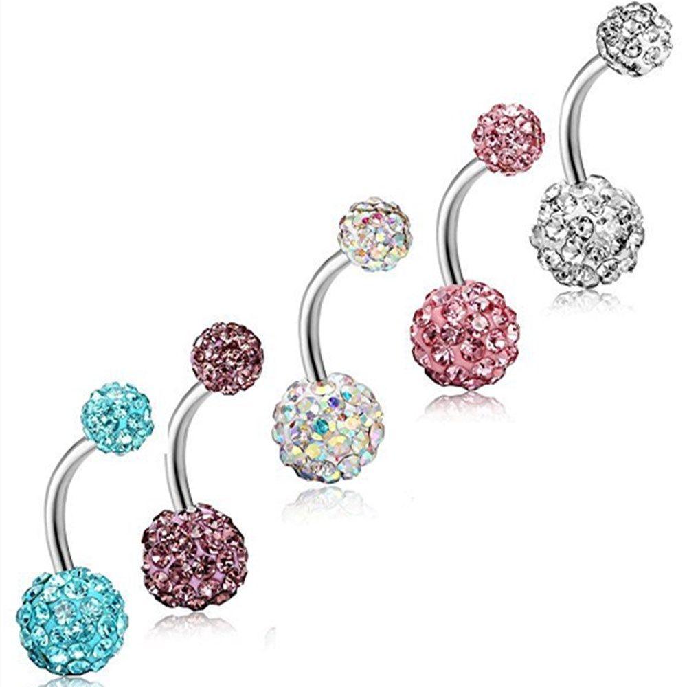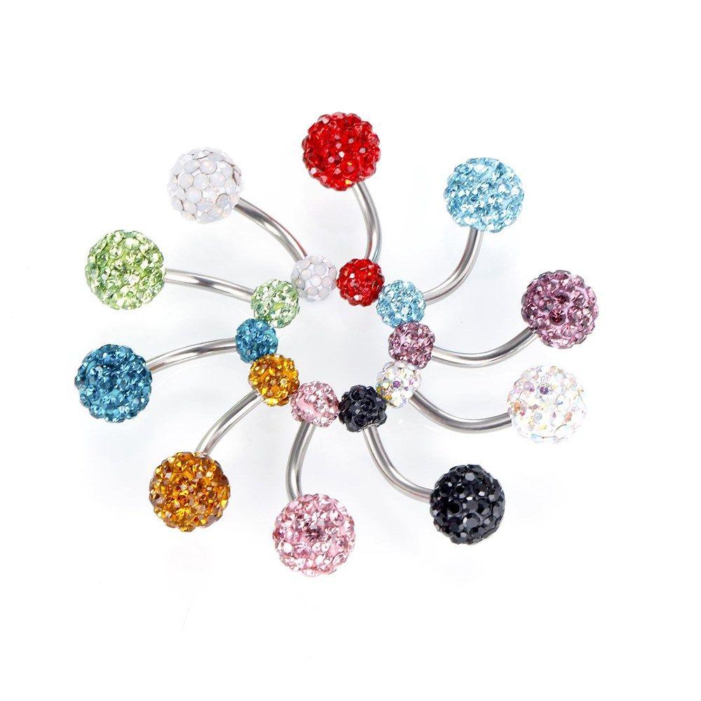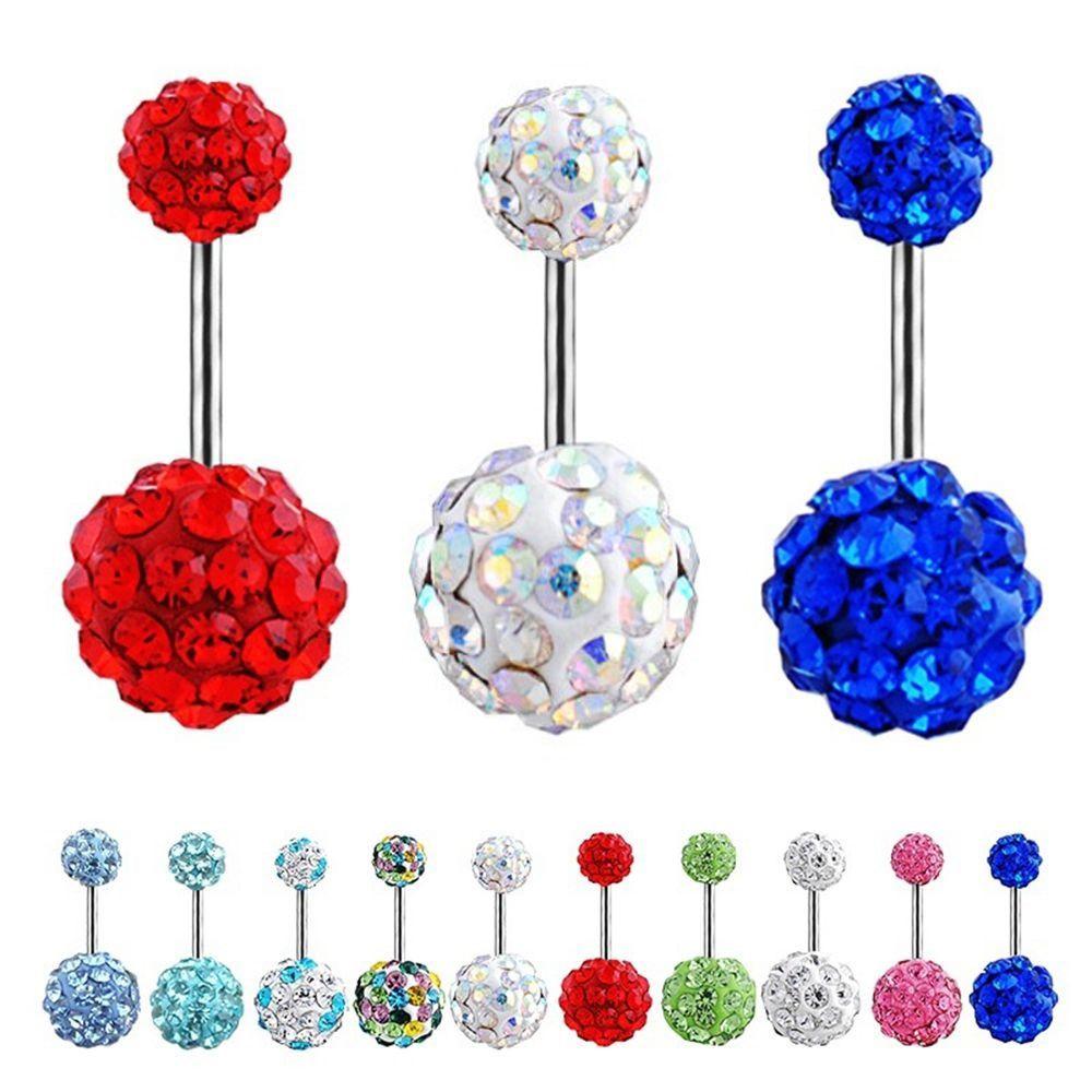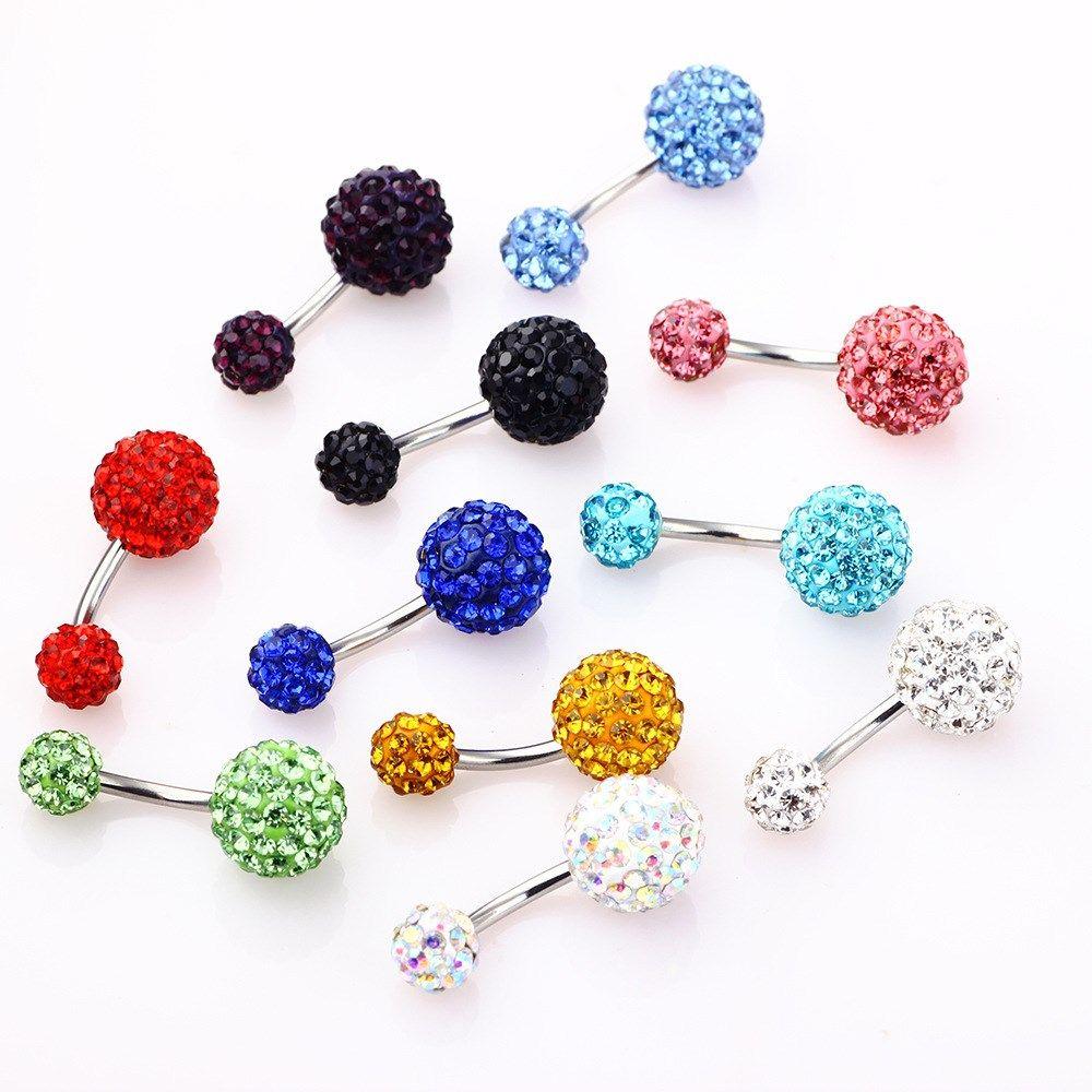 Ювелирные изделия для пирсинга, двойной кристалл, драгоценный камень, кольцо из нержавеющей стали для пупка, кольцо для пупка