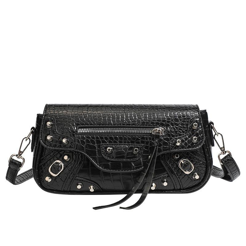 Модная сумка для горячей девушки, универсальная нишевая сумка через плечо с заклепками для женщин, новинка 2025 года, текстурированная сумка-багет в байкерском стиле, женская сумка