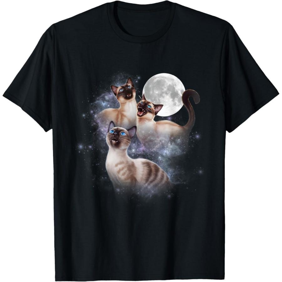 Забавная кошка три сиамских воющих на луну 3 котенка футболка для мужчин женщин