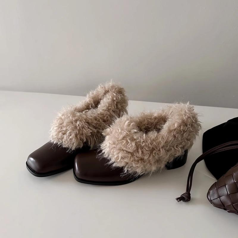 Туфли с квадратным носком, Пара ретро теплых флисовых туфель, Хлопковые туфли и Массивные туфли-одинарки