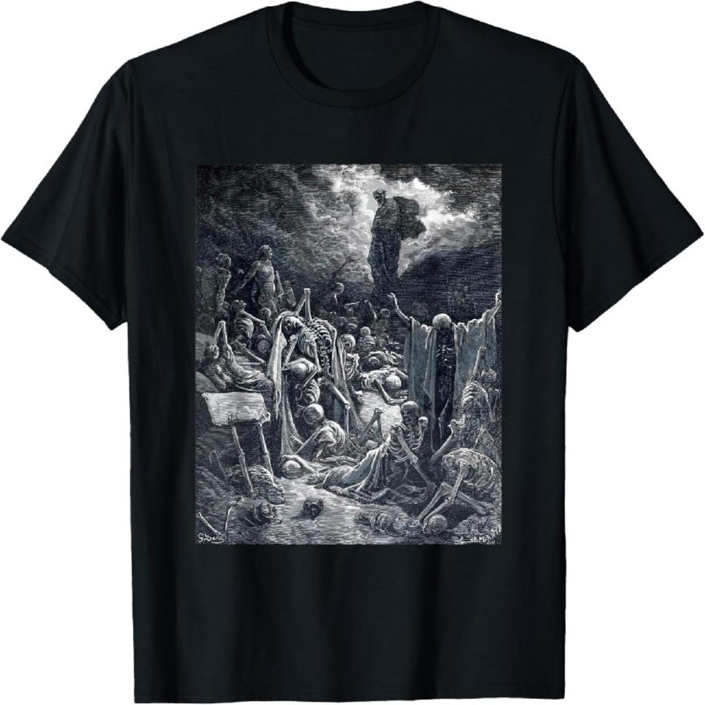 Унисекс-взрослые Черная Маленькая Классическая посадка Винтажная футболка Видение долины сухих костей Гюстава Доре (1866) - Футболка «Религиозное искусство»