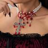 Многослойное ожерелье-капля крови с кисточкой, готическая бижутерия, модный Хэллоуин, чокер на ключицу, вечеринка