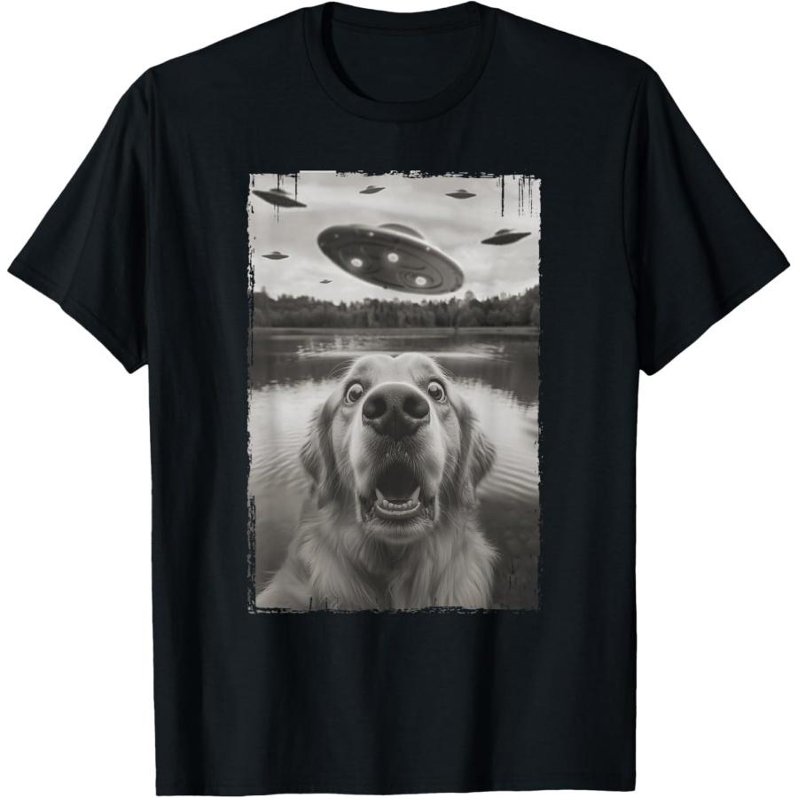 Golden Retriever Selfie with UFO - Funny Golden Retriever T-Shirt — купить товар онлайн с бесплатной доставкой по всему миру!