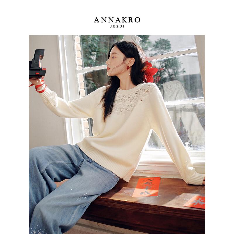 Jiu Zi Anna Kou Beaded Hollow-out Long-Sleeve Sweater