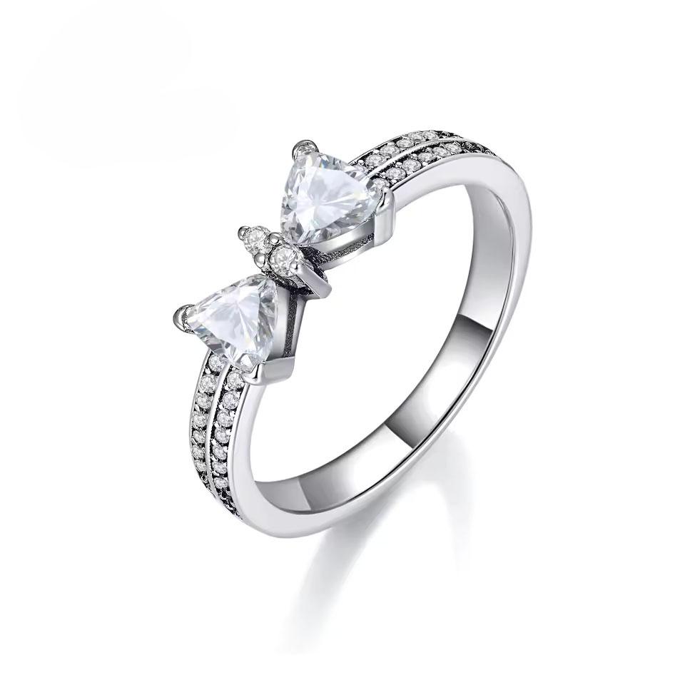 925 Silver Pink Bow Ring Timeless Red Blue Heart Finger Rings For Women Wedding Crystal Ring Jewelry Gift 2025 — купить товар онлайн с бесплатной доставкой по всему миру!