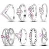 Кольцо из серебра 925 пробы с розовым бантом, Вечное, Красные и синие кольца на пальцы в форме сердца для женщин, Свадебное кольцо с кристаллами, Ювелирное украшение, Подарок 2025