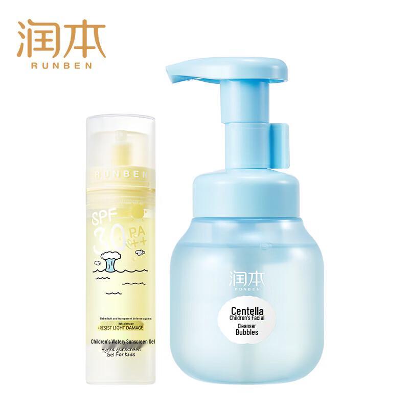 RUNBEN Набор детской косметики для ухода: Очищающая пенка с центеллой и солнцезащитный крем