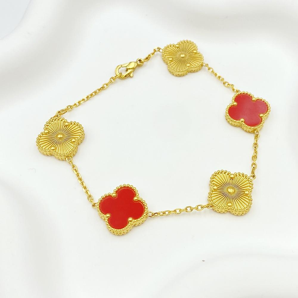 Браслет из титановой стали 15 мм с четырехлистным клевером и пятью звеньями, не выцветающий, модный женский браслет