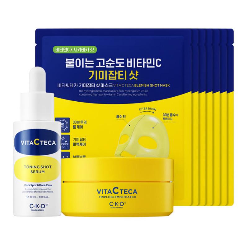 CKD Vita-C Teca Dark Spot Correcting Toning Shot Serum + Patch + Mask 7 Sheets Set