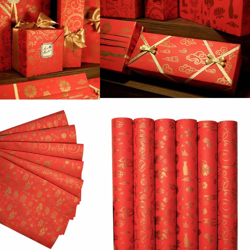 50 * 70 см Китайский Красный Подарочная Коробка на Новый Год Принадлежности Упаковочная Бумага Хранение Подарочная Бумага Бумага для Упаковки Подарков