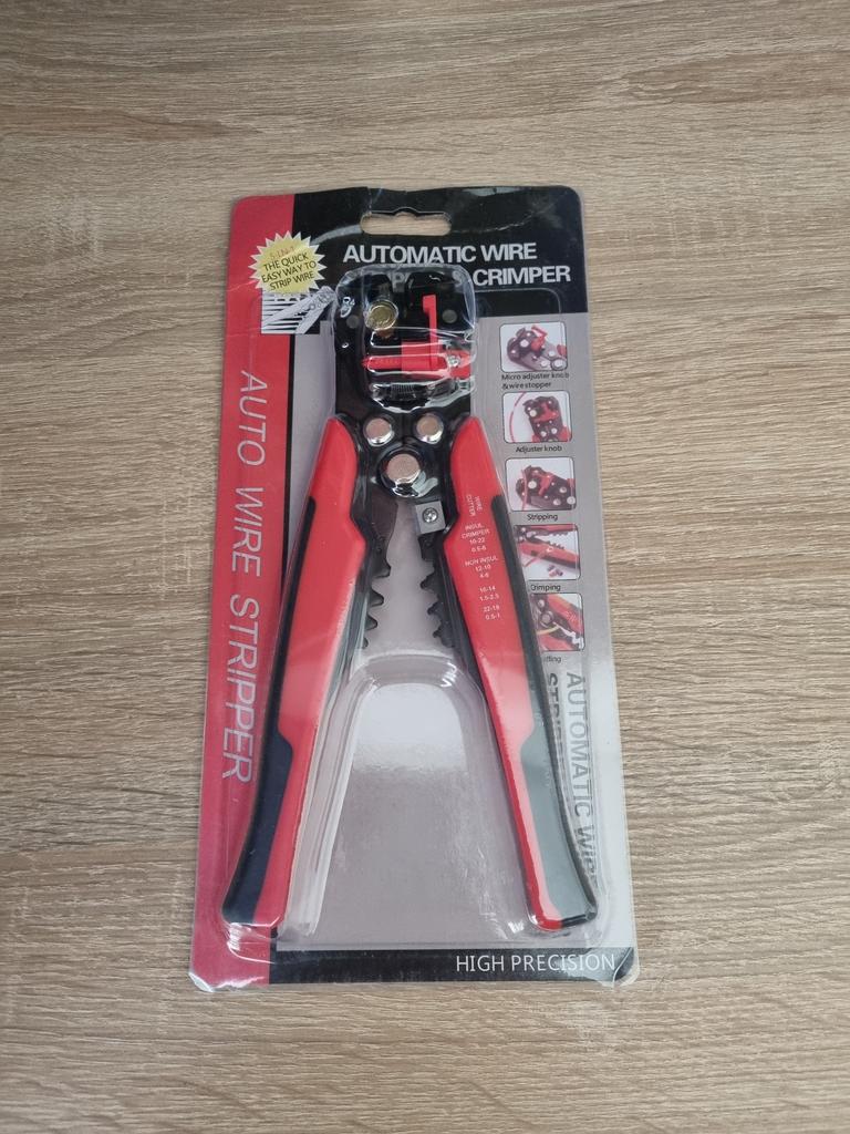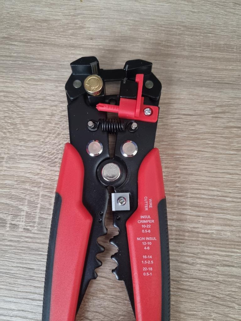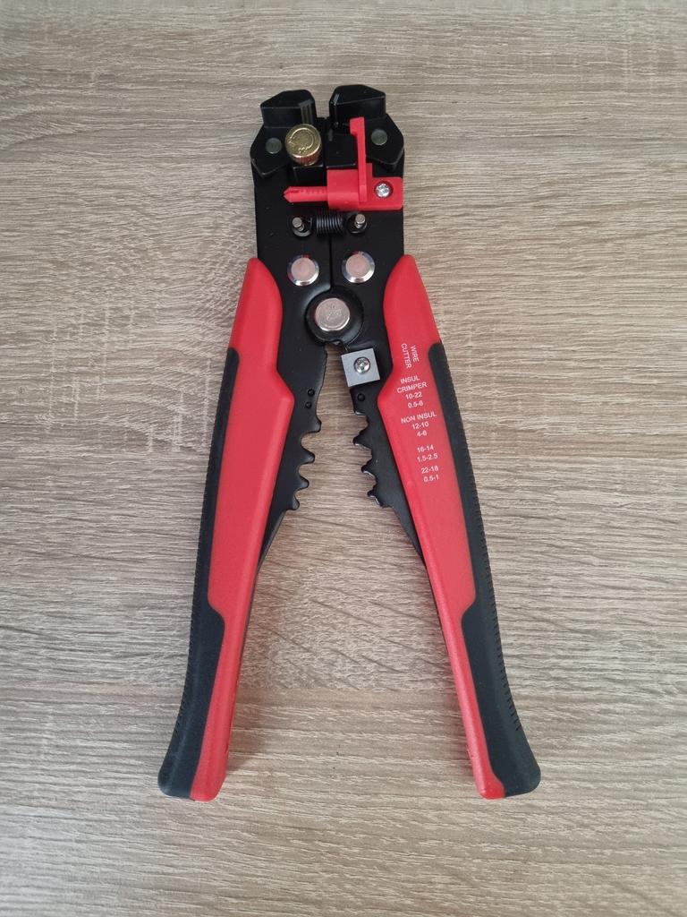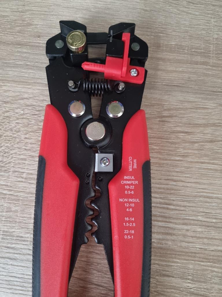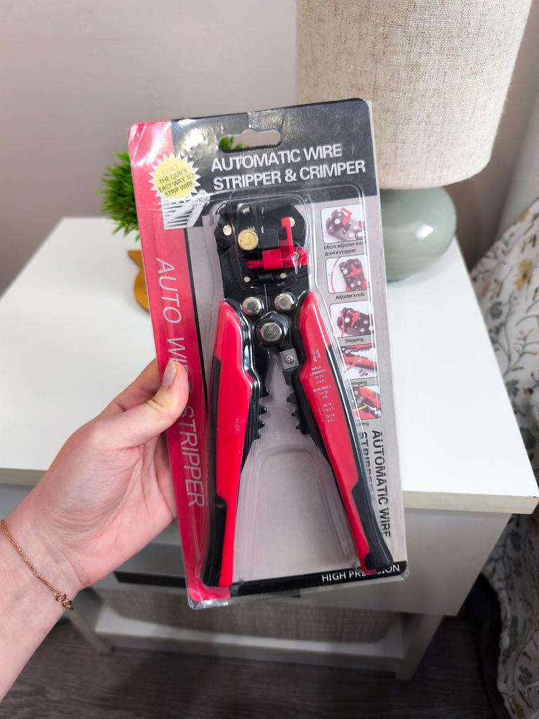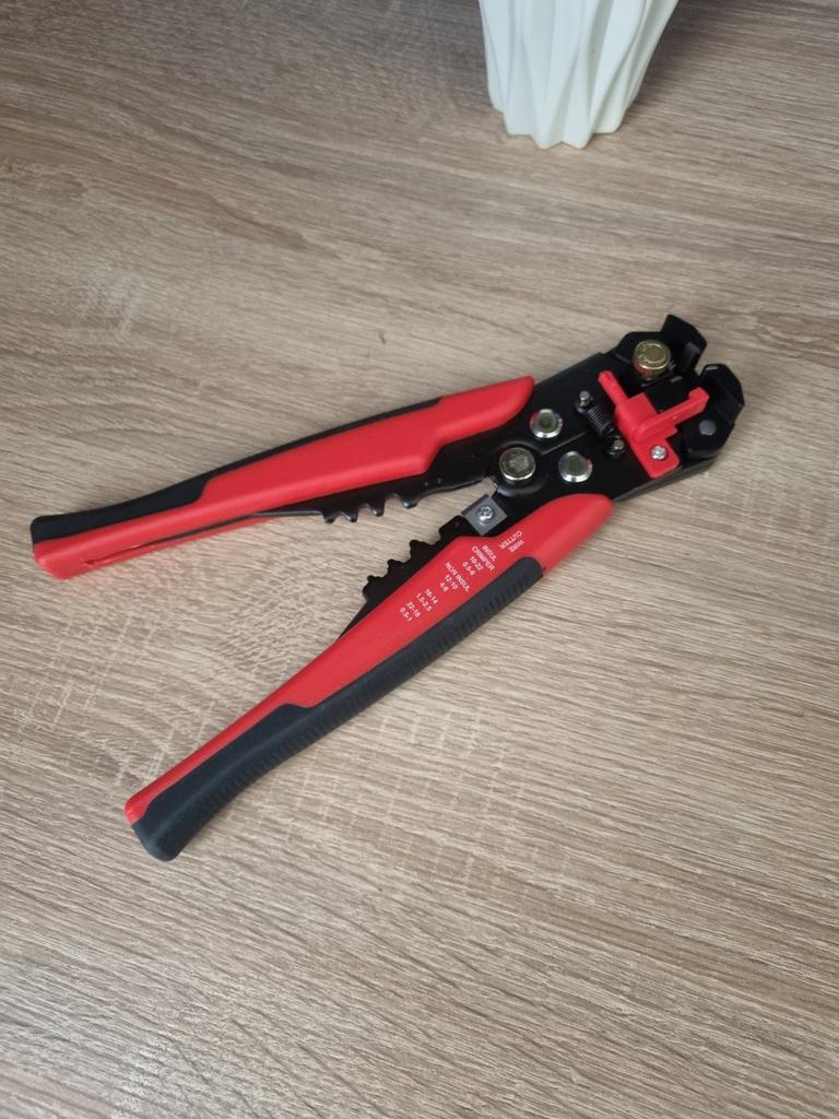 Автоматический стриппер 3-в-1 🛠️ Универсальный инструмент для электромонтажных работ, который заменяет сразу три прибора. Основные функции: 🔸Снятие изоляции (Stripping): Автоматический механизм подстраивается под нужный диаметр провода. Есть регулировочная ручка (Adjuster knob) и стопор для контроля длины зачистки. 🔸Обжим клемм (Crimping): Позволяет обжимать как изолированные (Insulated), так и неизолированные (Non-insulated) наконечники разных калибров. 🔸Резка провода (Wire Cutter): Встроенное лезвие между рукоятками для быстрой обрезки кабеля. Ключевые особенности: * Диапазон: Работает с проводами различных сечений (указаны на рукоятке в AWG и mm^2). * Эргономика: Двухкомпонентные красно-черные рукоятки обеспечивают удобный хват и не скользят в руке. * Точность: Позиционируется как инструмент высокой точности (High Precision) для быстрой и чистой работы. Итог: Незаменимый помощник для тех, кто часто работает с электрикой — экономит время и заменяет гору лишних инструментов.