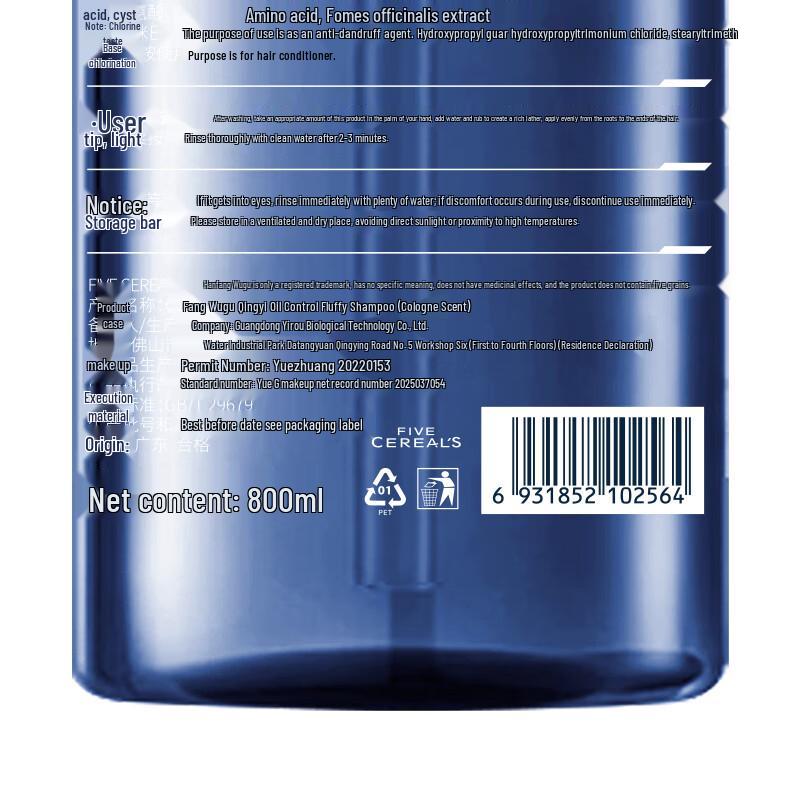 Корейский шампунь для мужчин, контролирующий жирность и придающий объем, с пятью злаками