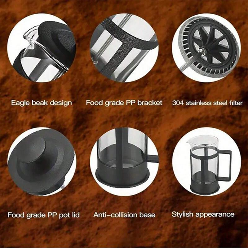 Кофейник френч-пресс с фильтром из высококачественного боросиликатного стекла с ручным перфоратором для кофе Многофункциональный заварочный чайник для чая и молока Инструменты